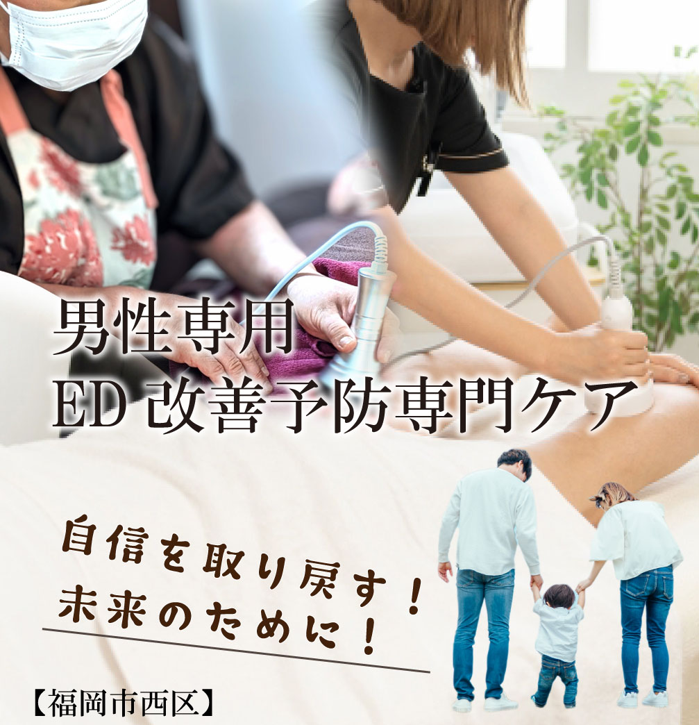 ラジオ波と下半身のリンパケア、足つぼ刺激により男性機能の改善と予防を促します。